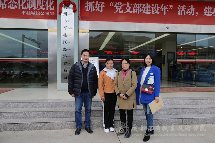 為了更加深入了解我院2015級學生的頂崗實習情況,規(guī)范我院頂崗實習學生管理,11月21日,我院頂崗實習第二次實地檢查小組在教務科研處的組織下,前往梧州、賀州兩地開展頂崗實習實地檢查工作,并于11月24日圓滿完成了此項工作。梧州-賀州線的頂崗實習實地檢查工作小組由財信系黨支部書記林芳帶隊,成員分別為會計系覃尚覺老師,財信系梁莉莉老師以及經(jīng)管系黃超倫老師。