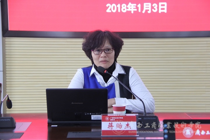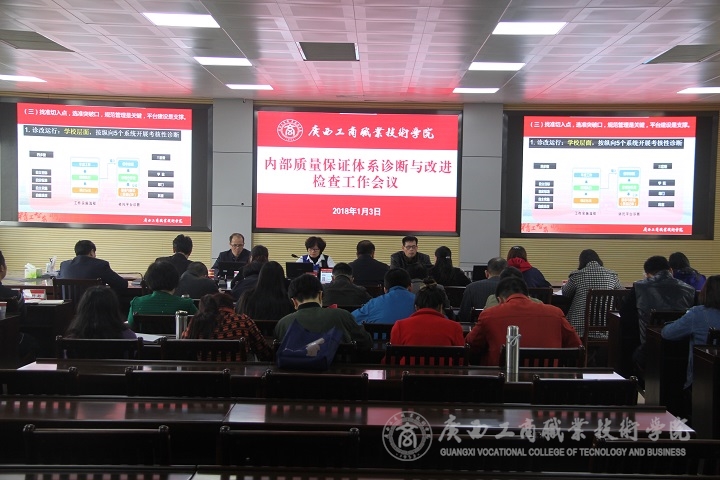 ? ? ? ? 2018年1月3日下午,自治區(qū)教育廳專家組蒞臨我校,全面檢查我院2017年內(nèi)部質(zhì)量保證體系診斷與改進(jìn)工作。專家組由廣西職業(yè)技術(shù)學(xué)院副院長蔣貽杰擔(dān)任組長,成員是廣西交通職業(yè)技術(shù)學(xué)院副院長陳海峰、廣西機(jī)電工程學(xué)校教研督導(dǎo)室主任王明總。?