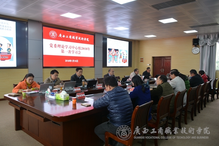 ? ? ? ? 2018年1月10日下午,學(xué)院黨委理論學(xué)習(xí)中心組2018年第一次學(xué)習(xí)會(huì)于院本部會(huì)議室召開。黨委書記覃武云主持學(xué)習(xí)會(huì)并作重點(diǎn)發(fā)言,黨委副書記、院長(zhǎng)陳杰、黨委副書記、紀(jì)委書記蒙啟成、副院長(zhǎng)李仕欽、副院長(zhǎng)李維、副院長(zhǎng)陳寧春也談了學(xué)習(xí)體會(huì)。黨委委員、各部門主要負(fù)責(zé)人、各系黨總支、直屬黨支部書記、學(xué)院工會(huì)、團(tuán)委負(fù)責(zé)人參加了會(huì)議。
