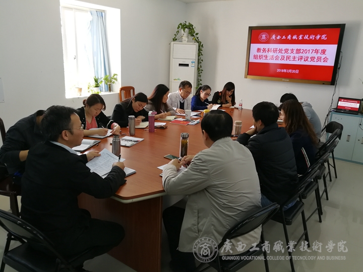 2018年3月20日下午,教務(wù)科研處黨支部在學(xué)術(shù)交流中心開展了2018年度組織生活會和民主評議黨員活動。本支部除一名黨員出差,一名黨員休產(chǎn)假外,其余13名黨員參加了會議。學(xué)院主管教學(xué)工作副院長李維同志作為支部黨員參加了會議。本次會議結(jié)合支部學(xué)習(xí)計劃安排,落實(shí)了學(xué)院《中共廣西工商職業(yè)技術(shù)學(xué)院委員會關(guān)于召開2017年度基層黨組織組織生活會和開展民主評議黨員的通知》(廣商院黨組〔2018〕2號)精神。