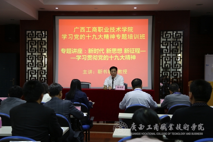 ? ? ? ? 開班儀式結(jié)束后,第二期培訓(xùn)立即進(jìn)入第一課的專題講座:新時(shí)代 新思想 新征程——學(xué)習(xí)貫徹黨的十九大精神。講座由廣西師范大學(xué)馬克思主義學(xué)院副院長靳書君教授為學(xué)員解讀黨的十九大精神。靳書君教授圍繞站在什么樣的歷史起點(diǎn)、實(shí)現(xiàn)什么樣的奮斗目標(biāo)、關(guān)于舉什么旗、關(guān)于走什么路、關(guān)于以什么樣的精神面貌去走等方面結(jié)合實(shí)際案例,以豐富的數(shù)據(jù)內(nèi)容、獨(dú)特的視角深刻解讀了黨的十九大精神。靳教授全程脫稿解說,理論功底深厚,講座緊貼實(shí)際、風(fēng)趣幽默、通俗易懂,對(duì)學(xué)員深入學(xué)習(xí)貫徹好黨的十九大精神具有很強(qiáng)的針對(duì)性和指導(dǎo)性。