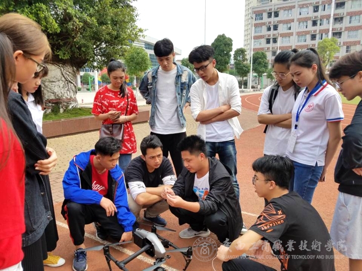 ? ? ? ? 近日,廣西電視臺(tái)公共頻道的楊世通編導(dǎo)等一行兩人,來(lái)到我院進(jìn)行新聞采訪之余,應(yīng)我院黨委宣傳部新聞中心的師生們之邀,特別為同學(xué)們開(kāi)設(shè)了一堂面對(duì)面的無(wú)人機(jī)戶外教學(xué)基本操作培訓(xùn)。