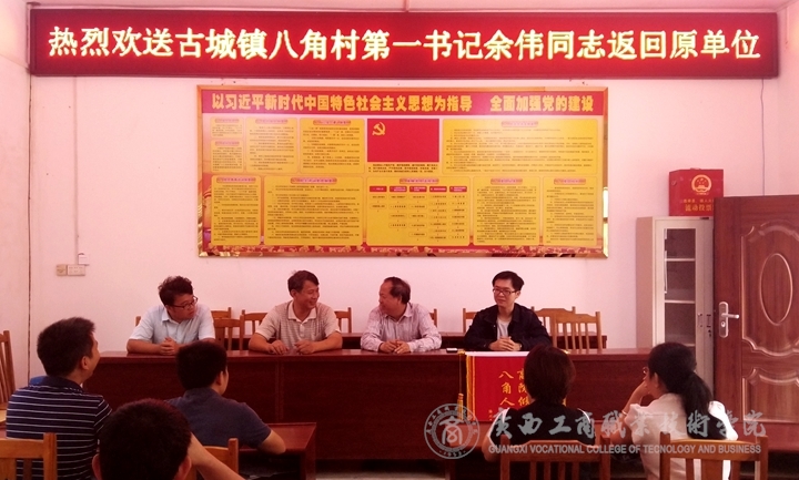 ??????? 根據(jù)中共廣西壯族自治區(qū)委員會(huì)組織部關(guān)于做好新一輪全區(qū)“美麗廣西”鄉(xiāng)村建設(shè)(扶貧)工作隊(duì)員派駐工作的要求,我院2016年駐陸川縣“美麗廣西”鄉(xiāng)村建設(shè)(扶貧)工作隊(duì)6名第一書記和1名工作隊(duì)員馮詩(shī)根、李朝鋒、余偉、羅北戰(zhàn)、譚爵璽、譚序光、方亮任期屆滿,除了李朝鋒因工作需要,繼續(xù)留任外,他們懷著對(duì)人民群眾和貧困戶無(wú)比深厚感情和無(wú)限眷戀即將離開。