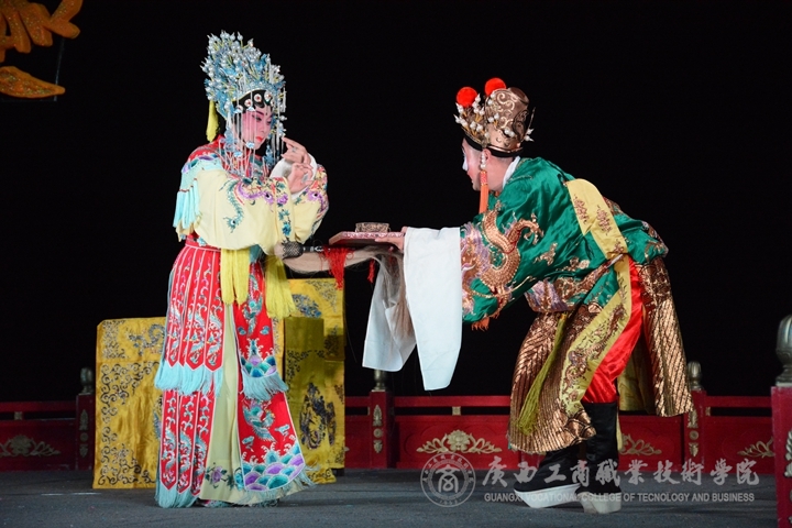 ? ? ? ? 為加強(qiáng)傳承和弘揚(yáng)中華優(yōu)秀傳統(tǒng)文化,推進(jìn)高雅藝術(shù)進(jìn)校園、戲曲進(jìn)校園,抓好中華優(yōu)秀傳統(tǒng)文化藝術(shù)傳承。2018年6月12日晚,南寧市民族文化藝術(shù)研究院“戲曲進(jìn)校園”—南派粵劇折子戲?qū)?chǎng)在我院鵬飛校區(qū)文體館二樓開演。我院師生現(xiàn)場(chǎng)欣賞了一場(chǎng)美輪美奐的演出。