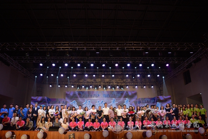 ??????? 6月26日晚,由廣西工商職業(yè)技術學院財信系主辦,財信系團總支,財信系學生會承辦的“緊跟十九大,青春夢起航”為主題的飛揚的青春畢業(yè)晚會在鵬飛路校區(qū)文體館二樓隆重舉行。財信系相關負責人、任課老師、班主任,2016、2017級全體學生,各兄弟院校代表和學院各組織,社團,協(xié)會代表參加并觀看了本次晚會。