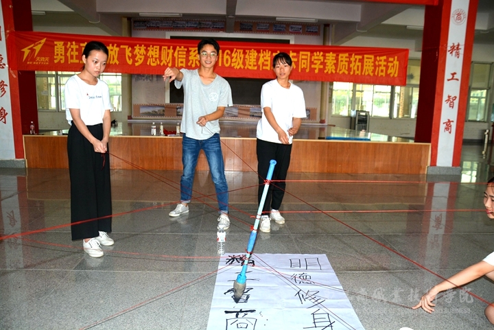 ? ? ? ? 本次活動包括團(tuán)隊建設(shè)、挑戰(zhàn)150、書寫校訓(xùn)三個項目的活動。通過破冰游戲打破人與人之間的隔膜,創(chuàng)造良好的溝通氛圍,從而進(jìn)行團(tuán)隊建設(shè),在團(tuán)隊協(xié)作完成各項活動的過程中,同學(xué)們深刻領(lǐng)會到團(tuán)隊合作的重要性。也有效提高了他們的膽量、勇氣、領(lǐng)導(dǎo)、組織、團(tuán)隊合作和有效溝通等方面的素質(zhì)和能力,也將助力他們實現(xiàn)自己的夢想。