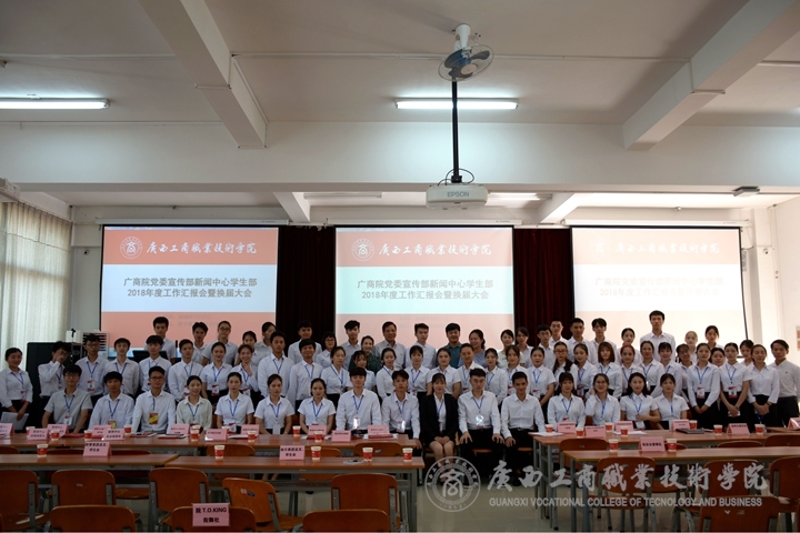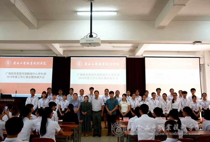 ??????? 2018年7月17日下午,學院黨委宣傳部新聞中心2018年度工作匯報會暨換屆大會在鵬飛校區(qū)報告廳召開。宣傳部部長韋勝強、部長助理陳宇寧、新聞中心指導老師莫惘、馮艷瓊、王衛(wèi)蘭,新聞中心全體成員及學院各大學生組織代表參加了本次大會。