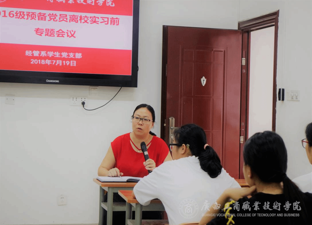 2018年7月19日下午,經(jīng)管系學(xué)生黨支部在2203教室召開2016級預(yù)備黨員離校實習(xí)專題會議。出席會議的有經(jīng)管系黨總支書記莫春華同志、學(xué)生黨支部書記張利同志、學(xué)生黨支部組織委員劉結(jié)玲同志,學(xué)生黨支部2016級預(yù)備黨員和系團(tuán)總支組織部成員。