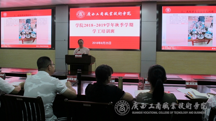 2018年8月25日,我院在校本部教學樓2119報告廳舉辦了2018-2019學年第一學期學工培訓班,學院副院長陳寧春、各系黨總支書記、系學工副主任、就業(yè)副主任、全體輔導員及學工處全體人員參加了培訓,本次培訓班由黨委學生工作部部長助理黃旭艷主持。