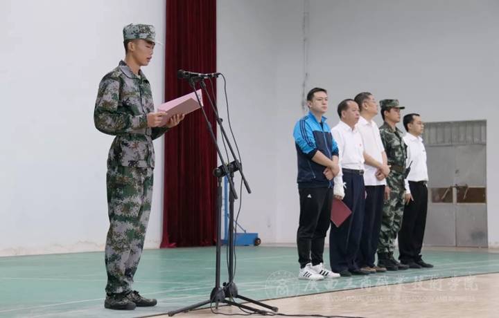 首先是來自財信系電商1804班的學生代表張傳煥同學發(fā)表講話,他表示,作為一名學生,要做到服從命令,聽從指揮,虛心向教官們學習,磨練自己的意志,為今后的生活和學習打下良好基礎,同時,也表達了在大學生活中自律的重要性。