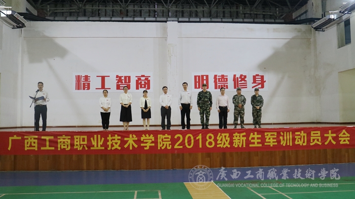 2018年10月22日上午,廣西工商職業(yè)技術學院2018級新生軍訓動員大會在鵬飛校區(qū)文體館二樓隆重舉行。參加本次動員大會的有:學院副院長李維和武警廣西總隊機動支隊三大隊大隊長陳宗沛出席了會議,學院教務科研處處長闕勇平、后勤管理處處長助理譚爵璽;各系黨總支書記、各系副主任、2018級輔導員、學工秘書、黨委學生工作部相關老師以及2018級全體學生參加了本次動員大會。本次軍訓動員大會由學工部副部長林雯主持。
