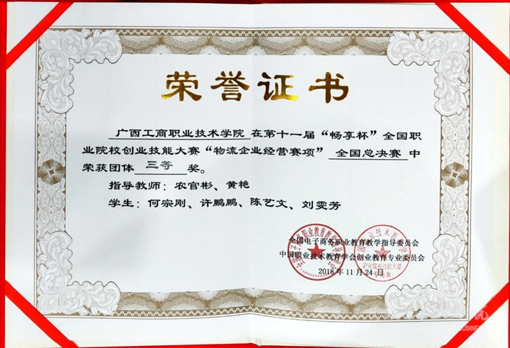 由全國(guó)電子商務(wù)職業(yè)教育教學(xué)指導(dǎo)委員會(huì)和中國(guó)職業(yè)技術(shù)教育學(xué)會(huì)創(chuàng)業(yè)教育專業(yè)委員會(huì)聯(lián)合舉辦的“第十一屆全國(guó)職業(yè)院校創(chuàng)業(yè)技能大賽物流企業(yè)經(jīng)營(yíng)賽項(xiàng)全國(guó)總決賽”于2018年11月23-25日在河北交通職業(yè)技術(shù)學(xué)院舉辦,我院經(jīng)管系派出農(nóng)官彬、黃艷兩位老師帶隊(duì)四位2018級(jí)物流管理專業(yè)學(xué)生參賽。