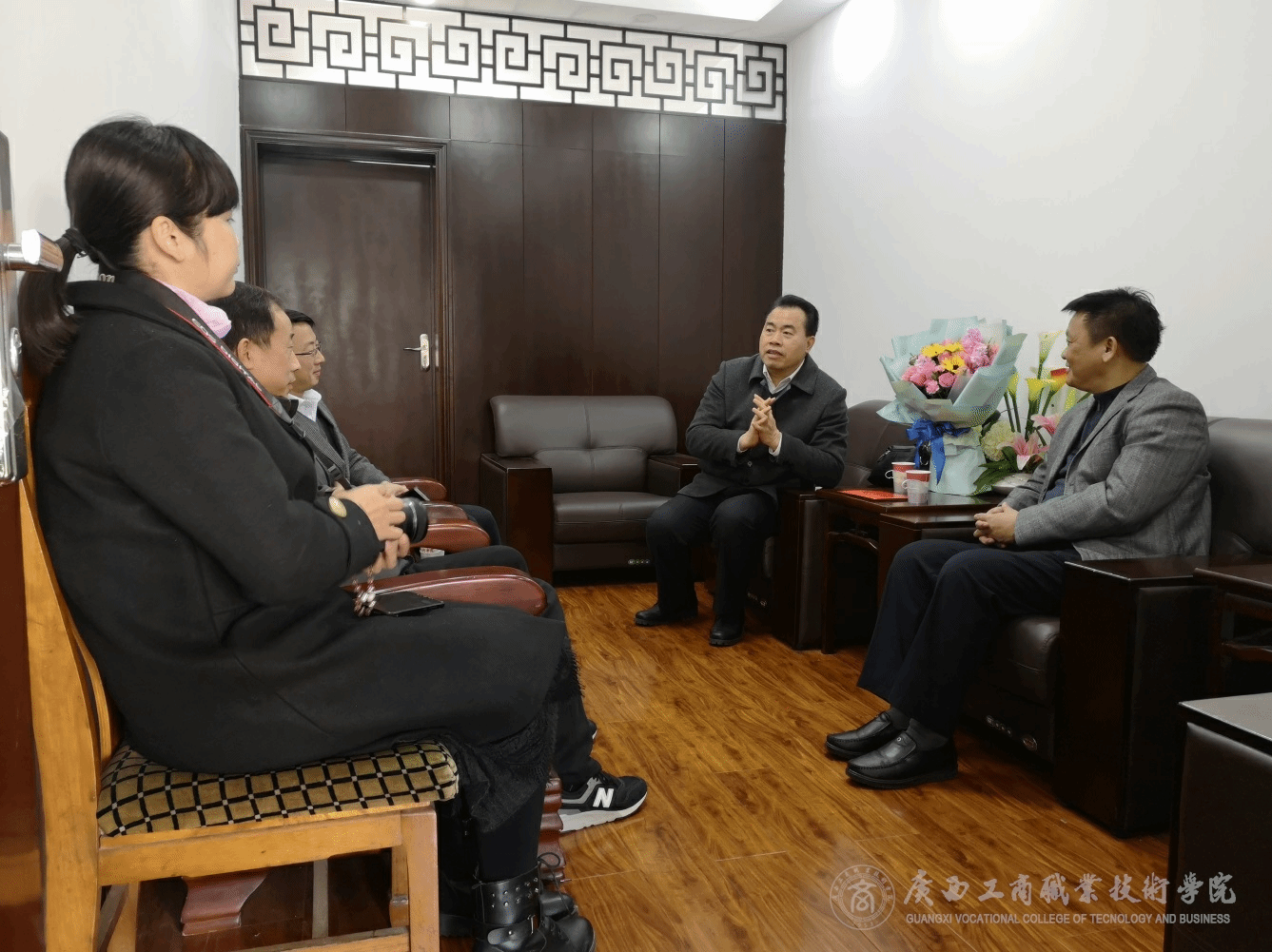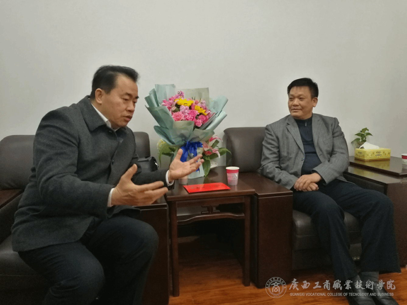 ? ? 2019年1月18日,西鄉(xiāng)塘區(qū)委常委、政法委書記藍日軍同志率隊到我院對學(xué)院二級教授陳杰院長進行走訪慰問,陳杰院長在學(xué)院接待室接待了藍日軍書記一行并開展座談交流。藍日軍書記代表西鄉(xiāng)塘區(qū)黨委對陳杰院長致以誠摯問候,表達了深切的關(guān)愛,向陳杰院長贈送了鮮花和慰問金。藍日軍書記表示,西鄉(xiāng)塘區(qū)黨委歷來重視各類專家人才,真切希望陳杰院長與城區(qū)之間繼續(xù)保持緊密的聯(lián)系。座談結(jié)束后,陳杰院長帶領(lǐng)藍日軍書記一行參觀了學(xué)院校園,并向介紹了學(xué)院的新風(fēng)貌、新氣象。