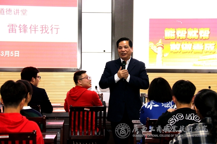 覃武云對(duì)同學(xué)們每個(gè)環(huán)節(jié)的分享都做了恰如其分的點(diǎn)評(píng),并在“誦讀雷鋒日記環(huán)節(jié)”結(jié)束后做了“雷鋒精神”的講解,升華了本次道德講堂的主題。