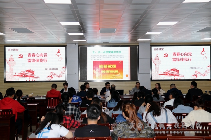 ??????? 齊唱一首學(xué)雷鋒歌曲《學(xué)習(xí)雷鋒好榜樣》,講授一堂樸實(shí)生動(dòng)的《雷鋒精神:一座不朽的道德豐碑》德育課,講一個(gè)雷鋒故事,讀一篇雷鋒日記,講述一個(gè)身邊的雷鋒故事,分享一次學(xué)習(xí)體會(huì)……這樣豐富多彩的安排,讓人心潮澎湃,受益匪淺,精彩停不下來。原來,這是廣商院人在舉辦以“青春心向黨,雷鋒伴我行”為主題的特別的道德講堂活動(dòng)。