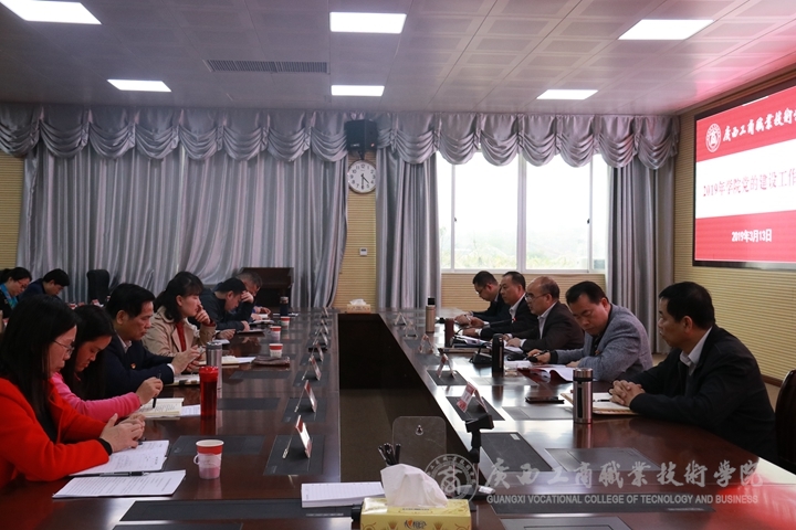 ? ? ? ? 2019年3月13日下午,我院于鵬飛校區(qū)視頻會(huì)議室召開2019年黨的建設(shè)工作會(huì)議。學(xué)院領(lǐng)導(dǎo)、全體中層黨員領(lǐng)導(dǎo)干部、各黨總支、直屬黨支部書記、委員、各教師黨支部、學(xué)生黨支部書記、委員、黨委工作部門全體人員、全體輔導(dǎo)員參加會(huì)議,中層非黨員領(lǐng)導(dǎo)干部受邀列席會(huì)議。學(xué)院黨委書記覃武云在會(huì)上做2019年學(xué)院黨的建設(shè)工作報(bào)告。院長(zhǎng)陳杰主持會(huì)議。