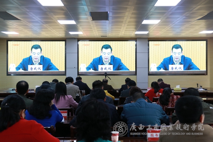 ? ? ? ? 廣西工商職業(yè)技術學院于鵬飛校區(qū)報告廳設分會場,學院領導班子成員、學院黨委委員、紀委委員、各部門、各單位主要負責人參加會議。