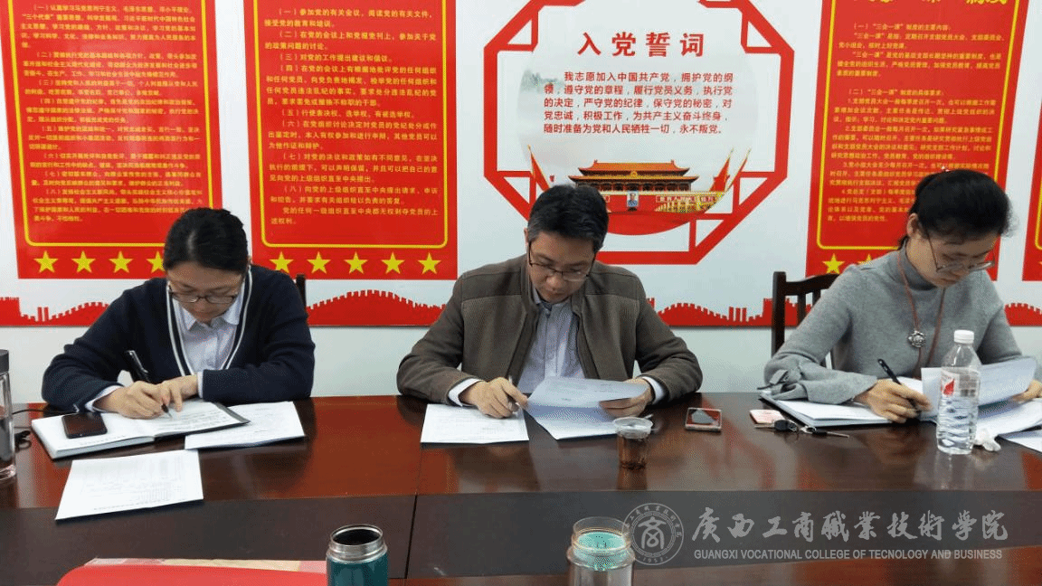 ? ? ? ? 會上,首先由張宇斐向大會作學生黨支部2018年黨建工作總結(jié),分別從政治建設(shè)、思想建設(shè)、組織建設(shè)、作風建設(shè)和紀律建設(shè)等五個方面匯報了支部建設(shè)情況,指出在黨員隊伍建設(shè)、網(wǎng)絡(luò)輿情監(jiān)控、推進基層黨組織建設(shè)和校外學生黨員培養(yǎng)工作中有較為突出的亮點。同時,對黨支部2019年黨建工作提出新的要求:一是加強對大學生黨員教育的有效方法、管理內(nèi)容、管理機制和活動形式等內(nèi)容進行研究和創(chuàng)新;二是加強組織理論學習,豐富黨員活動形式;三是加強先進黨員的培育和榜樣宣傳力度。接著,是開展全體黨員的批評與自我批評環(huán)節(jié),每位黨員都能嚴格按照程序從學習貫徹習近平新時代中國特色社會主義思想,樹牢“四個意識”、堅定“四個自信”、堅決做到“兩個維護”和履職踐諾、擔當作為、真抓實干、遵規(guī)守紀等方面查找差距和不足,認真剖析存在問題的原因及確定下一步整改計劃。同時,每位黨員都依次對其他黨員同志提出批評與建議,內(nèi)容涵蓋了教學管理、科研立項、教學方法、學生管理、突發(fā)事件應急處理、人際溝通等方面,為每位黨員進一步加強自身綜合能力提供了更多可行性的方法和寶貴意見。在批評和自我批評之后,開展民主評議黨員活動,依次進行個人自評、黨員互評和民主測評。