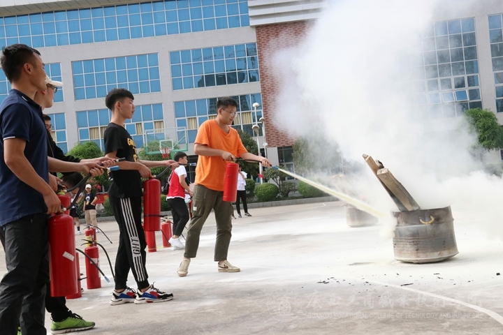 ??????? 最后,陸錫才重點(diǎn)對(duì)遇到突發(fā)火災(zāi)時(shí)如何自救做了詳細(xì)講解,向同學(xué)們展示了如何使用滅火器、水管滅火進(jìn)行指導(dǎo),讓大家更詳細(xì)地掌握了滅火方法,以便遇到突發(fā)火災(zāi)情況下能沉著冷靜應(yīng)付。隨后,現(xiàn)場(chǎng)師生們紛紛上場(chǎng)進(jìn)行實(shí)踐操作,體驗(yàn)了滅火器材的使用和操作程序。