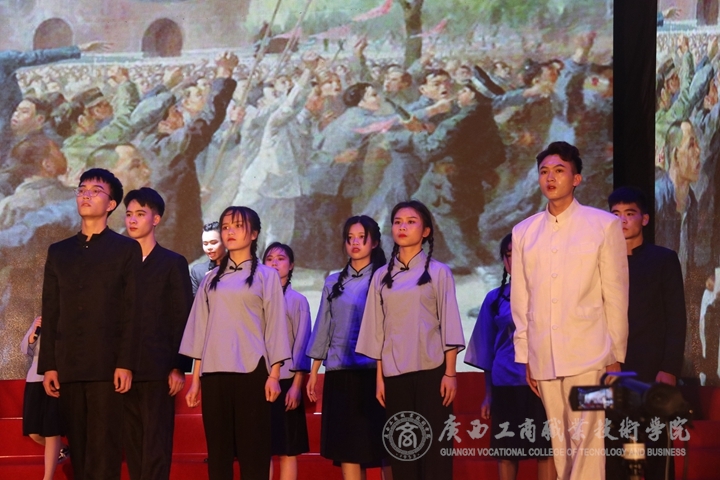 為紀(jì)念五四運(yùn)動(dòng)100周年,進(jìn)一步繼承和弘揚(yáng)五四精神,牢記共青團(tuán)的光榮使命,團(tuán)結(jié)青年學(xué)生以?shī)^發(fā)向上的精神狀態(tài)緊緊圍繞黨的周?chē)?月9日晚,我院于鵬飛校區(qū)文體館二樓舉辦以“百年五四耀青春 青年共創(chuàng)新時(shí)代”為主題的五四文藝晚會(huì)。學(xué)院黨委書(shū)記覃武云、院長(zhǎng)陳杰、黨委副書(shū)記、紀(jì)委書(shū)記蒙啟成、副院長(zhǎng)李維、副院長(zhǎng)陳寧春出席本場(chǎng)晚會(huì),各部門(mén)、各單位主要負(fù)責(zé)人,黨委學(xué)生工作部全體教師,各系學(xué)工副主任、各系團(tuán)總支負(fù)責(zé)人,全體輔導(dǎo)員,青年教工團(tuán)支部全體教師;各兄弟院校代表以及學(xué)院各系學(xué)生代表觀看了晚會(huì)。