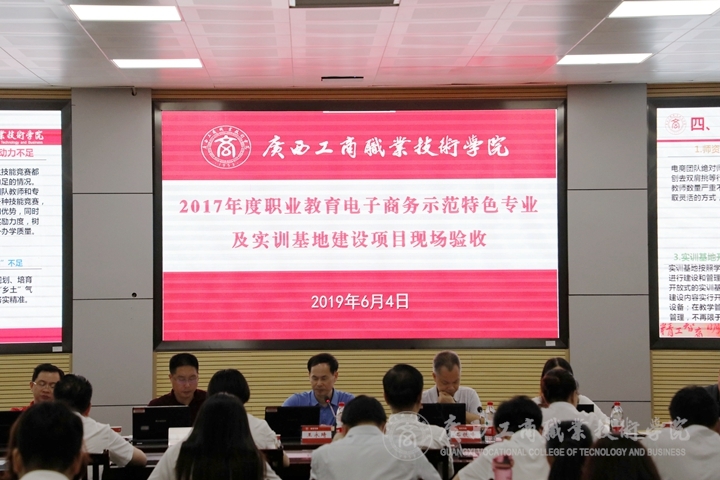 ??????? 6月4日上午,我院于鵬飛校區(qū)教學(xué)樓視頻會議室召開了2017年度職業(yè)教育電子商務(wù)示范特色專業(yè)及實訓(xùn)基地建設(shè)項目現(xiàn)場驗收會議。驗收專家組成員和我院院長李維出席本次會議、各系主任、各系教學(xué)(分管項目)副主任及其他負責(zé)人、各系正副教研室主任、骨干老師、電子商務(wù)項目匯報人,其他部門相關(guān)驗收工作人員及教務(wù)科研處相關(guān)人員參加本次驗收會議。