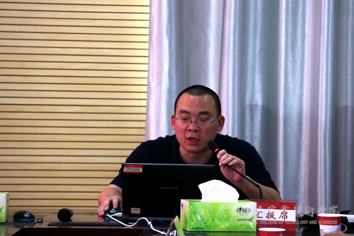 ??????? 驗收工作分為四個階段。第一階段為賀州學院旅游與體育健康學院院長、教授楊主泉介紹專家組成員及驗收流程。由財信系主任主任蘇波匯報食品營養(yǎng)與檢測專業(yè)項目情況,主要從項目的總體情況、項目建設的主要成就、項目建設創(chuàng)新點與特色和主要的問題及改進措施四個方面進行匯報。