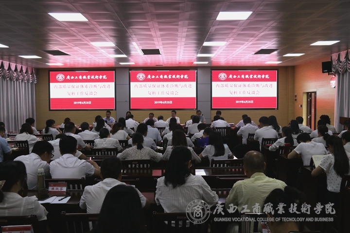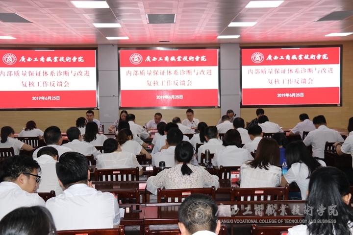 ??????? 6月25日上午,學(xué)院2019年內(nèi)部質(zhì)量保證體系診斷與改進(jìn)現(xiàn)場復(fù)核工作反饋會在鵬飛校區(qū)視頻會議室召開,自治區(qū)教育廳專家組,學(xué)院領(lǐng)導(dǎo),全體中層干部,學(xué)院內(nèi)部質(zhì)量診改復(fù)核工作領(lǐng)導(dǎo)小組綜合組及專項(xiàng)組成員,各系專業(yè)帶頭人,專業(yè)和課程診改匯報(bào)人、教師和班級診改匯報(bào)人,學(xué)生代表參加了本次反饋會。反饋會議由專家組副組長龍偉忠主持。