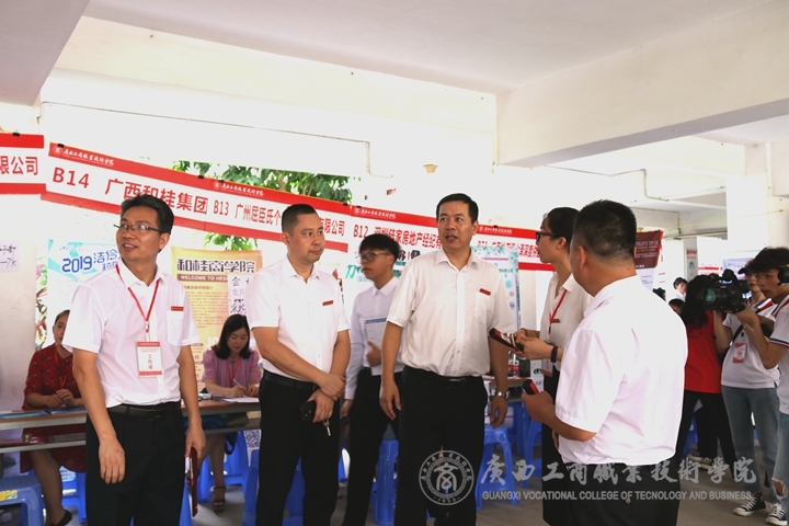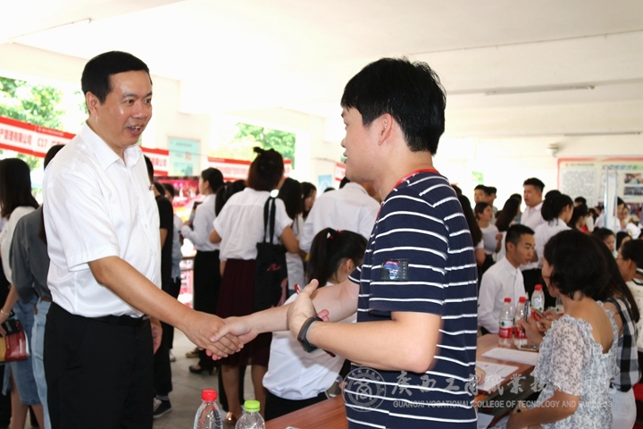 ? ? ? ? 為更好拓寬我院畢業(yè)生就業(yè)渠道,積極向企業(yè)用人單位提供應(yīng)用型人才,我院于6月29日上午在鵬飛校區(qū)教學(xué)樓架空層舉辦2019年畢業(yè)生就業(yè)洽談會暨頂崗實習(xí)企業(yè)推介會,提供了眾多攤位,供企業(yè)展開人才招聘工作。學(xué)院領(lǐng)導(dǎo)對本次活動高度重視,黨委書記覃武云、院長李維、黨委副書記蒙啟成、副院長陳寧春到洽談會現(xiàn)場指導(dǎo)工作,細(xì)心詢問招聘企業(yè)的相關(guān)訴求和招聘情況。