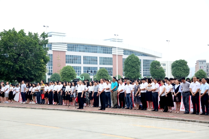 ??????? 8月26日清晨,我院新學(xué)期的第一次升旗儀式在鵬飛校區(qū)田徑運動場隆重舉行,出席人員有學(xué)院領(lǐng)導(dǎo)、各部門領(lǐng)導(dǎo)、各系部門老師和2018級全體學(xué)生。本次升旗儀式由黨委學(xué)工部副部長林雯主持。