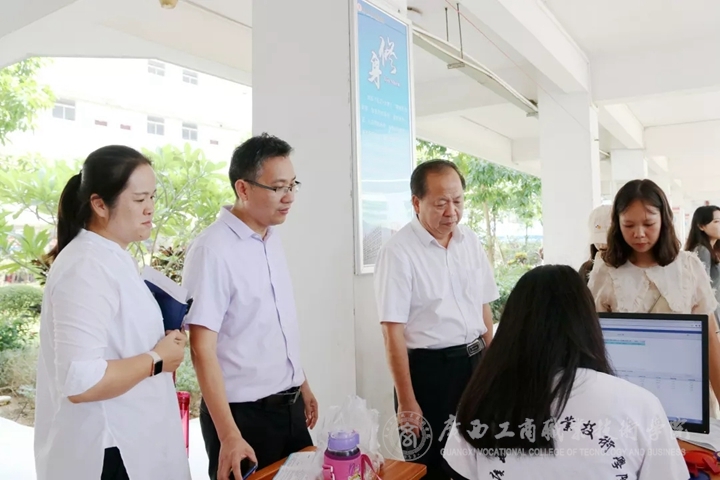 ??????? 為做好迎新工作,學(xué)院高度重視,學(xué)院院長李維、副院長李仕欽等學(xué)院領(lǐng)導(dǎo)來到現(xiàn)場指導(dǎo)新生接待工作。在“綠色通道”辦理處,李維院長親自熟悉有關(guān)軟件系統(tǒng),了解貧困生入學(xué)工作流程,不讓一個孩子因為經(jīng)濟而失學(xué)。在新生咨詢服務(wù)處,李仕欽副院長排在學(xué)生隊伍后面,深入了解學(xué)生及家長咨詢的問題,查看相關(guān)工作進展的效果。