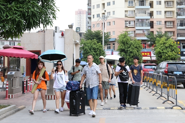 ??????? 一大早,校園的各個(gè)角落都熱鬧起來了,教學(xué)樓架空層場地周圍的各系迎新站點(diǎn)已經(jīng)出現(xiàn)了一批又一批的學(xué)生及家長。他們從四面八方蜂擁而至,大多新生都是由父母陪同著。家長們遠(yuǎn)道而來,不顧路途的疲勞,扛著大大小小行李,緊緊地跟在孩子的身后。
