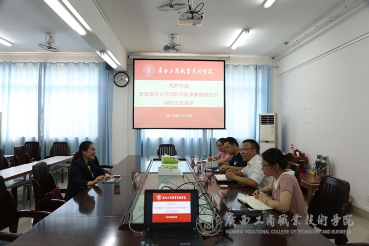 ? ? ? ? 9月20日下午,暹羅大學(xué)國(guó)際學(xué)院副院長(zhǎng)、國(guó)際外事處副處長(zhǎng)朱映麗女士到我院洽談國(guó)際教育合作與交流的相關(guān)事宜。學(xué)院教務(wù)科研處處長(zhǎng)闕勇平在會(huì)議室接待并展開(kāi)會(huì)議。我院教務(wù)科研處與招生工作處領(lǐng)導(dǎo)參加了此次交流會(huì)議。