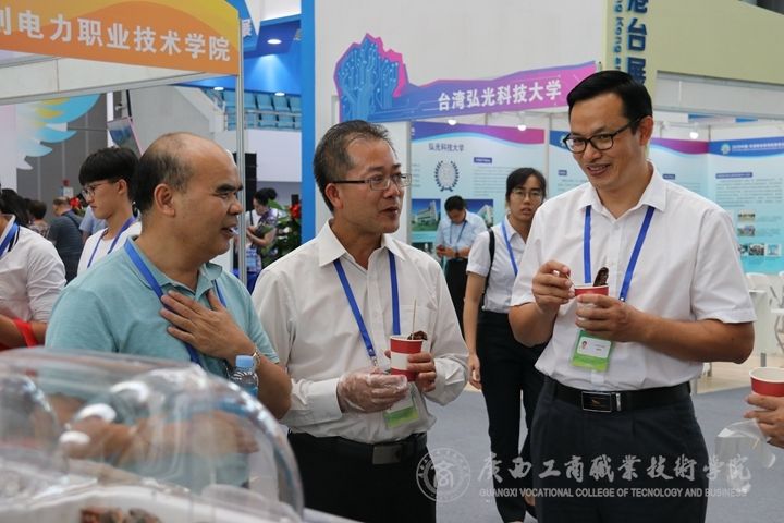 ? ? ? ? 學(xué)院的展位設(shè)計(jì)充分體現(xiàn)出學(xué)?!凹Z?商”特色。糧油食品專業(yè)群的李影球博士帶領(lǐng)學(xué)生為嘉賓奉上用28種原材料精心制作的健康美味鹵鴨系列——技“鴨”群芳,這是糧食副產(chǎn)物精深加工的科研成果;現(xiàn)代商務(wù)服務(wù)專業(yè)群的梁昕園老師與學(xué)生設(shè)計(jì)出時(shí)尚與傳統(tǒng)相結(jié)合的各類糧食產(chǎn)品精美包裝作品——時(shí)光稻留。學(xué)院黨委書記覃武云,院長李維以及學(xué)院黨委副書記蒙啟成、副院長陳寧春分別來到我院展區(qū)查看現(xiàn)場,為現(xiàn)場各領(lǐng)導(dǎo),嘉賓等一一介紹了我院的產(chǎn)品。師生的作品受到了上級領(lǐng)導(dǎo)及各國嘉賓的高度認(rèn)可。9月20日,我院組織了100名學(xué)生前往參觀東盟職業(yè)教育聯(lián)展。