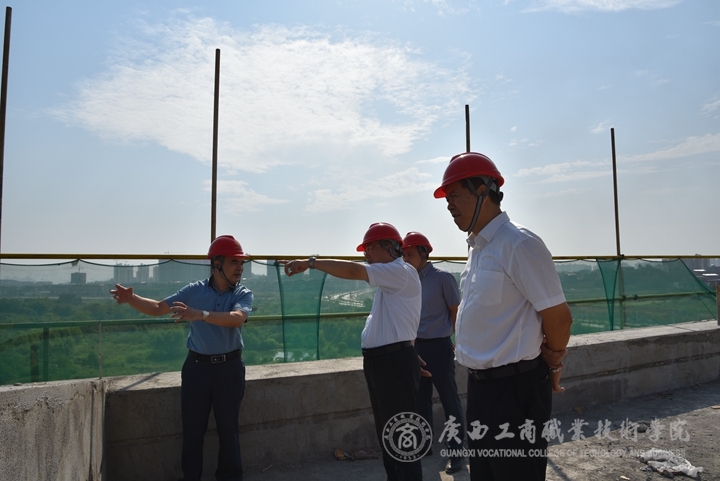 ? ? ? ? 在參觀完武鳴校區(qū)實(shí)景沙盤,了解學(xué)院武鳴校區(qū)的建設(shè)規(guī)模,基本規(guī)劃和施工建設(shè)計(jì)劃后,吳宇雄局長到武鳴校區(qū)(一期)1標(biāo)段已經(jīng)封頂?shù)纳虒W(xué)樓(東A-5、東A-6棟)、行政綜合樓(東A-7棟)實(shí)地了解施工進(jìn)展、裝修效果以及安全生產(chǎn)等情況,最后在武鳴校區(qū)建設(shè)指揮部會(huì)議室,李維院長就武鳴校區(qū)的建設(shè)情況和存在的困難做了詳細(xì)匯報(bào),覃武云書記也代表學(xué)院黨委在建設(shè)武鳴校區(qū)的決心等方面做了表態(tài)。