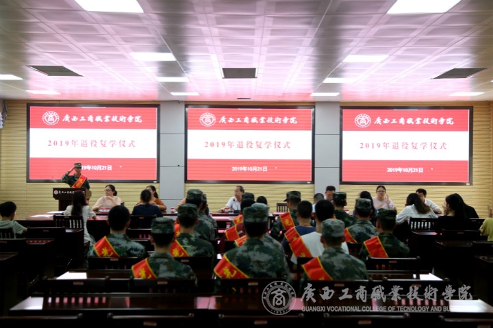 ? ? ? ? 儀式開始,由學院征兵工作站負責人黃旭艷宣讀2019年退役復學學生名單。學院領導李仕欽為2019年退役復學學生贈送紀念品。