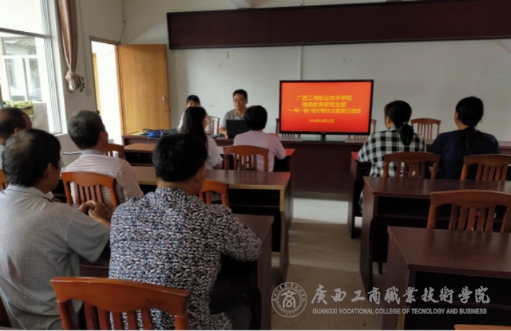 ? ? ? ? 根據(jù)《中共廣西工商職業(yè)技術(shù)學(xué)院委員會(huì)關(guān)于開展“不忘初心、牢記使命”主題教育的實(shí)施方案》文件精神和《繼續(xù)教育部黨支部“不忘初心、牢記使命”實(shí)施方案》的工作安排,10月22日,繼續(xù)教育部黨支部到陸川縣馬坡鎮(zhèn)靖西村開展“一幫一聯(lián)”結(jié)對(duì)幫扶活動(dòng)暨主題黨日活動(dòng)。