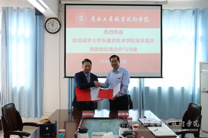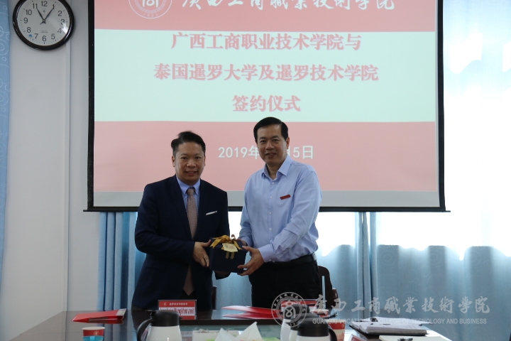? ? ? ? 會議最后,李維院長與暹羅科技學(xué)院院長Jomphong Mongkhonvanit共同簽署了合作協(xié)議,并互贈了代表各自院校的禮物。院長李維還帶領(lǐng)暹羅科技學(xué)院院長Jomphong Mongkhonvanit一行人參觀我院的教室和電商實訓(xùn)室。