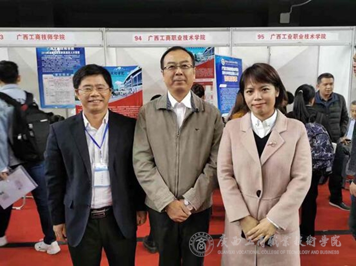 (廣西壯族自治區(qū)人力資源和社會(huì)保障廳人力資源流動(dòng)管理處處長蔣艷生同志(左一)等領(lǐng)導(dǎo)蒞臨我院展位指導(dǎo)工作)