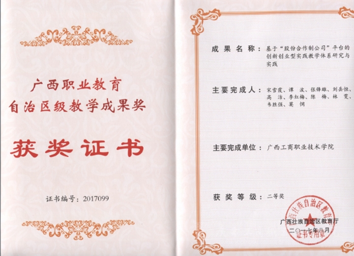 (自治區(qū)教學(xué)成果獎(jiǎng)二等獎(jiǎng)證書)