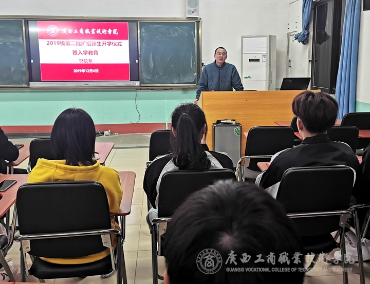 2019年12月4日19時(shí),財(cái)信系在中堯校區(qū)工會樓302教室,組織2019級高職擴(kuò)招二階段新生參加新生開學(xué)儀式暨入學(xué)教育。學(xué)院學(xué)工部副部長林雯、財(cái)信系主任蘇波、財(cái)信系學(xué)工副主任譚序光、財(cái)信系教學(xué)秘書呂周及財(cái)信系高職擴(kuò)招二階段19名新生參加了開學(xué)儀式。