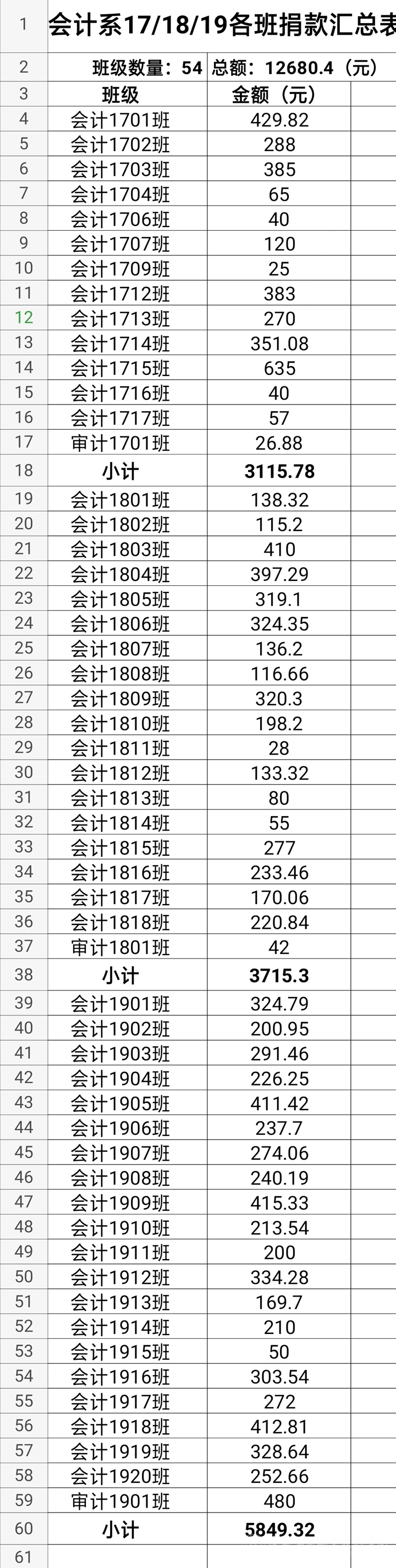 (會計(jì)系捐款明細(xì)表)