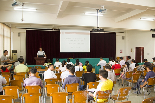 2015年5月28日下午,由李仕欽副院長主講的《自覺踐行“三嚴(yán)三實(shí)”做一名合格的黨員干部》“三嚴(yán)三實(shí)”專題教育黨課在我院校本部2145報(bào)告廳開講,學(xué)院各部門的相關(guān)負(fù)責(zé)人代表當(dāng)場聽課。