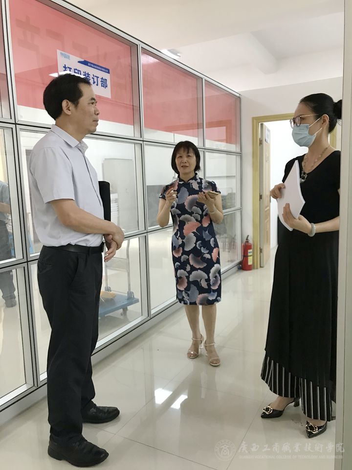 2020年6月11日下午,自治區(qū)糧食和物資儲(chǔ)備局副局長(zhǎng)李國(guó)平在覃武云書記和李維院長(zhǎng)的陪同下,參觀了學(xué)院會(huì)計(jì)系“智慧會(huì)計(jì)工廠產(chǎn)教融合”實(shí)訓(xùn)基地。會(huì)計(jì)系副主任粟衛(wèi)紅向李國(guó)平副局長(zhǎng)一行介紹了實(shí)訓(xùn)基地的運(yùn)行模式和校企合作的情況,講解了共享財(cái)務(wù)平臺(tái)與傳統(tǒng)會(huì)計(jì)賬務(wù)處理的區(qū)別。正在基地帶領(lǐng)學(xué)生開展實(shí)訓(xùn)的南寧橙米商務(wù)服務(wù)有限公司的會(huì)計(jì)部經(jīng)理江琴也向幾位領(lǐng)導(dǎo)介紹了企業(yè)的情況和學(xué)生實(shí)習(xí)實(shí)訓(xùn)的情況。李國(guó)平副局長(zhǎng)還饒有興致的觀看了全自動(dòng)裝訂機(jī)的操作,充分肯定了學(xué)校和會(huì)計(jì)系在深化產(chǎn)教融合方面取得的成效。覃武云書記和李維院長(zhǎng)也分別對(duì)會(huì)計(jì)系的教學(xué)、科研、校企合作等工作提出了要求。