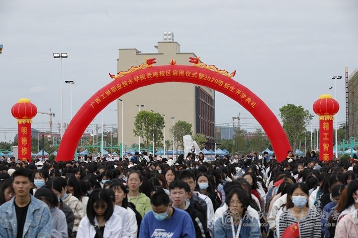 金秋十月,晴空萬里。2020年10月18日上午,廣西工商職業(yè)技術(shù)學(xué)院隆重舉行武鳴校區(qū)啟用儀式暨2020級(jí)武鳴校區(qū)新生開學(xué)典禮。自治區(qū)發(fā)展改革委黨組成員、自治區(qū)糧食和物資儲(chǔ)備局黨組書記、局長(zhǎng)吳宇雄,自治區(qū)糧食和物資儲(chǔ)備局黨組成員、副局長(zhǎng)李國(guó)平,自治區(qū)糧食和物資儲(chǔ)備局一級(jí)巡視員林愈溪,自治區(qū)教育廳基建處處長(zhǎng)陳標(biāo)智,南寧市武鳴區(qū)副區(qū)長(zhǎng)陸耀忠,南寧教育園區(qū)規(guī)劃建設(shè)現(xiàn)場(chǎng)指揮部常務(wù)副指揮長(zhǎng)劉岱青,廣西工商技師學(xué)院院長(zhǎng)、黨委書記楊靜錦,自治區(qū)糧食和物資儲(chǔ)備局、南寧教育園區(qū)、武鳴區(qū)相關(guān)領(lǐng)導(dǎo)和企事業(yè)單位嘉賓、職教集團(tuán)理事單位、校友代表、施工單位代表、設(shè)計(jì)單位代表、監(jiān)理單位代表,廣西工商職業(yè)技術(shù)學(xué)院領(lǐng)導(dǎo)、學(xué)院各部門主要負(fù)責(zé)人、教師代表、離退休領(lǐng)導(dǎo)和教師代表、學(xué)生代表等參加活動(dòng),共同見證學(xué)院發(fā)展史上具有新的里程碑意義的輝煌時(shí)刻。