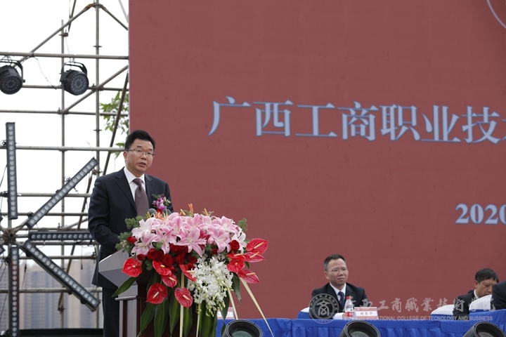 吳宇雄代表自治區(qū)糧食和物資儲(chǔ)備局對(duì)廣西工商職業(yè)技術(shù)學(xué)院武鳴校區(qū)的啟用表示熱烈的祝賀,向長(zhǎng)期以來關(guān)心支持學(xué)院發(fā)展和武鳴校區(qū)建設(shè)的自治區(qū)有關(guān)部門和武鳴區(qū)表示衷心感謝,向首批入住武鳴校區(qū)的2020級(jí)新生表示最美好的祝愿!