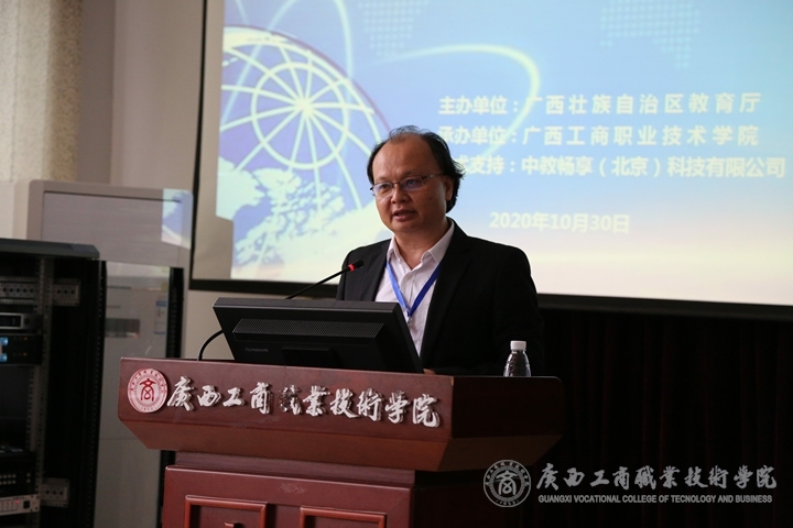 大會(huì)裁判長韋濱教授講話,他指出,大賽是職業(yè)院校教育教學(xué)活動(dòng)的一種重要形式和有效延伸,提升技術(shù)技能人才培養(yǎng)質(zhì)量的重要抓手,大賽能有效提升職業(yè)院校學(xué)生技能水平,促進(jìn)職業(yè)教育專業(yè)建設(shè)和教學(xué)改革,提升教育教學(xué)質(zhì)量,是反應(yīng)我們職業(yè)教育教學(xué)水平的重要學(xué)生技能賽事;大賽的主要內(nèi)容設(shè)計(jì)圍繞市場(chǎng)營銷專業(yè)教學(xué)標(biāo)準(zhǔn)和真實(shí)工作工程、任務(wù)與要求,通過商務(wù)數(shù)據(jù)分析、營銷實(shí)戰(zhàn)展示和情景營銷沙盤三個(gè)模板,重點(diǎn)考察選手的職業(yè)素養(yǎng)、實(shí)踐動(dòng)手能力、綜合判斷分析能力、創(chuàng)新創(chuàng)意水平、辦公工具軟件應(yīng)用能力、溝通表達(dá)、禮儀規(guī)范和團(tuán)隊(duì)合作精神。他對(duì)承辦院校廣西工商職業(yè)技術(shù)學(xué)院和技術(shù)支持單位中教暢享北京科技有限公司的所有領(lǐng)導(dǎo)、老師、同學(xué)們和工作人員表示由衷的感謝!會(huì)上,他以賽事裁判長的身份和榮譽(yù)對(duì)本次賽事做出個(gè)人承諾,預(yù)祝參賽的27所院校的參賽隊(duì)伍,108名參賽選手比賽順利,充分發(fā)揮水平,取得滿意的成績!