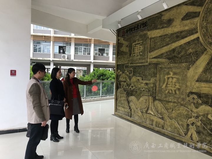 首先,在南寧職業(yè)技術(shù)學(xué)院紀(jì)委書記羅桂全的帶領(lǐng)下,參觀了南寧職業(yè)技術(shù)學(xué)院廉政教育基地,詳細(xì)了解了廉政教育基地建設(shè)的主要內(nèi)容、主要目的以及構(gòu)建的思路,對如何開展廉政教育、融入師生日常等方面進行了共同探討。