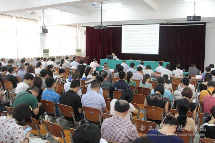 2015年6月9日下午,我院在校本部教學樓一樓報告廳舉辦依法治校專題講座。自治區(qū)教育廳政策法規(guī)處處長伍錦昌作了題為《全面推進依法治教依法治?!返膶n}講座。學院領(lǐng)導覃武云、蒙啟成、李仕欽、李維出席,學院副科級以上干部參加。講座由蒙啟成副書記主持。