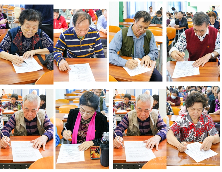 活動(dòng)中,學(xué)院離退休老同志合唱紅歌《社會(huì)主義好》、《歌唱祖國(guó)》,歌聲嘹亮唱響了離退休老同志心中的激蕩,唱響了愛黨愛國(guó)的主旋律;接著,學(xué)院黨員離退休老同志重溫入黨誓詞,再次接受了心靈的洗禮,銘記莊嚴(yán)的承諾,牢記共產(chǎn)黨員的政治使命和光榮職責(zé)。在“黨史知識(shí)大家答”環(huán)節(jié),全體黨員認(rèn)真、嚴(yán)肅交上100分的答卷。活動(dòng)最后,離退休老同志通過在操場(chǎng)健步走,展現(xiàn)我院老黨員的精神面貌。老同志們表示今天的黨史學(xué)習(xí)教育意義重大,自己將認(rèn)真參加學(xué)院黨史學(xué)習(xí)教育,爭(zhēng)取以學(xué)促用發(fā)揮余熱。