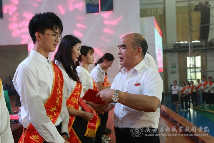(覃武云書記為優(yōu)秀畢業(yè)生頒發(fā)證書)